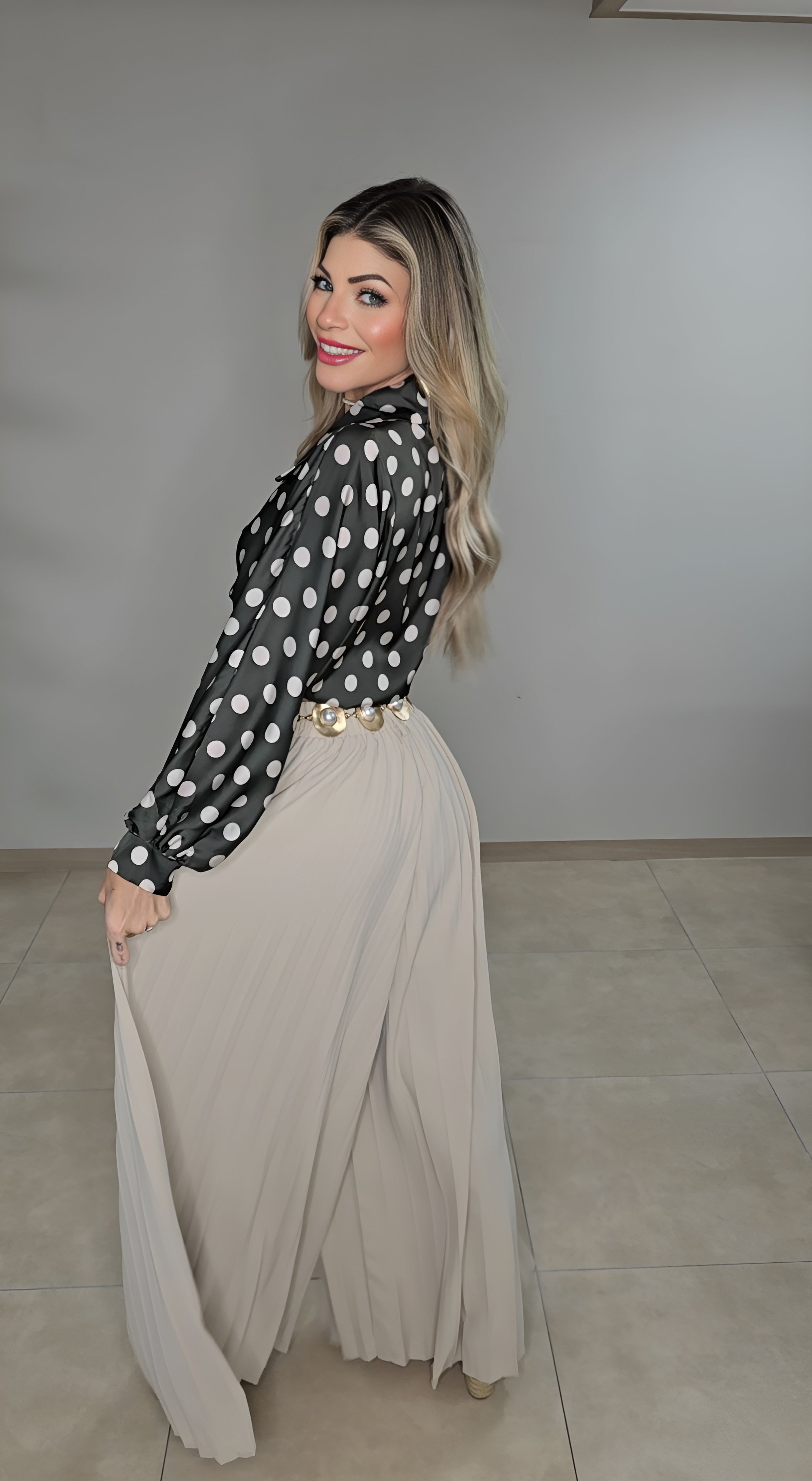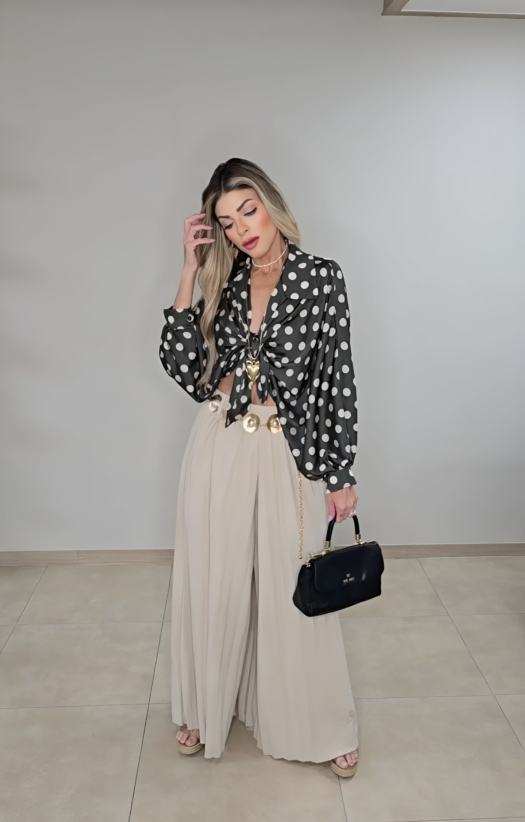 Olive polka dots blouse top